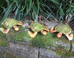 Unique garden art is created by cutting steel plate with a hand plasma torch, then shaped over a coal fired forge and weld fabricated. After its creation, each sculpture is moved outdoors to develop a natural rusted patina finish.