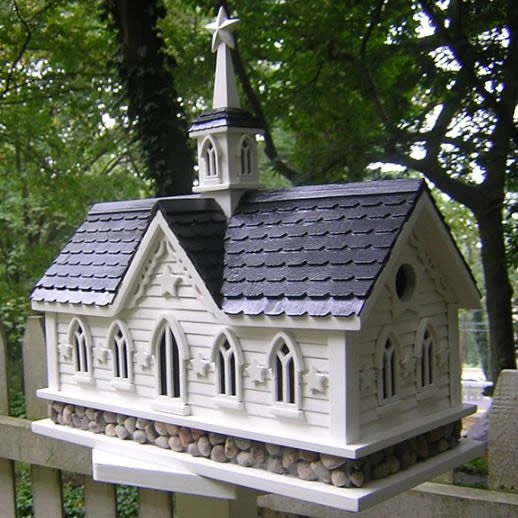 Stars adorn this wonderfully detailed bird abode on 4 sides. River stone foundation completes the timeless look, with two nest sites inside.